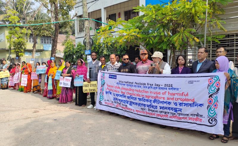 শ্যামনগরে ক্ষতিকর কীটনাশক ব্যবহার হ্রাসের দাবিতে মানববন্ধন