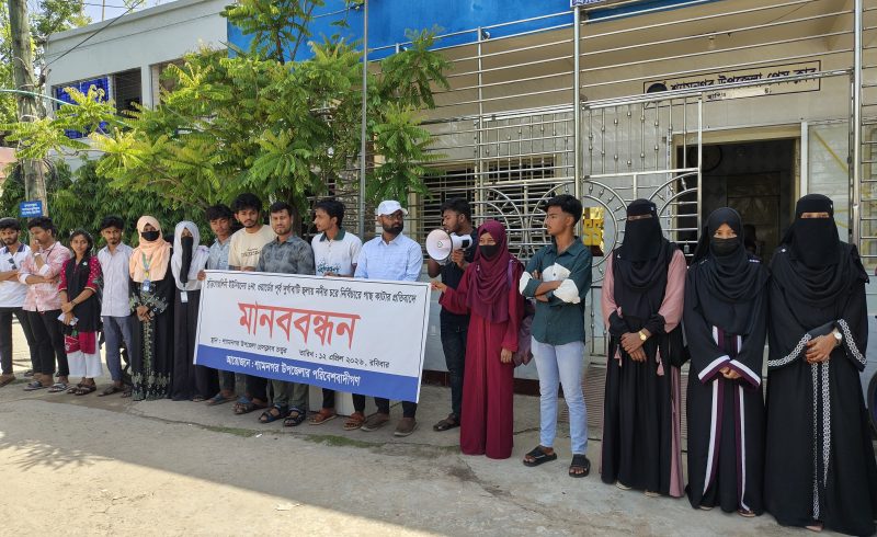শ্যামনগরে নদীর চরে গাছ হত্যার প্রতিবাদে মানববন্ধন