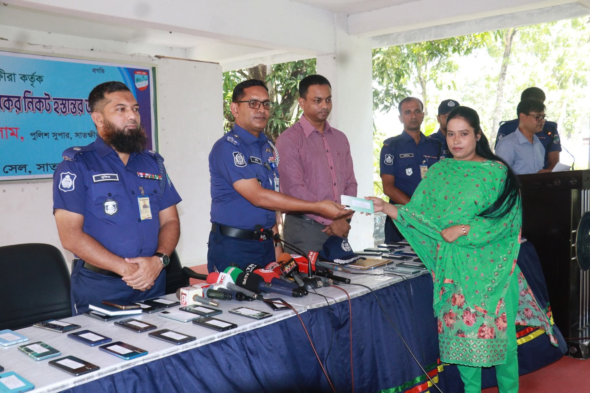 সাতক্ষীরায় উদ্ধারকৃত মোবাইল ফোন , নগদ ও বিকাশের টাকা হস্তান্তর