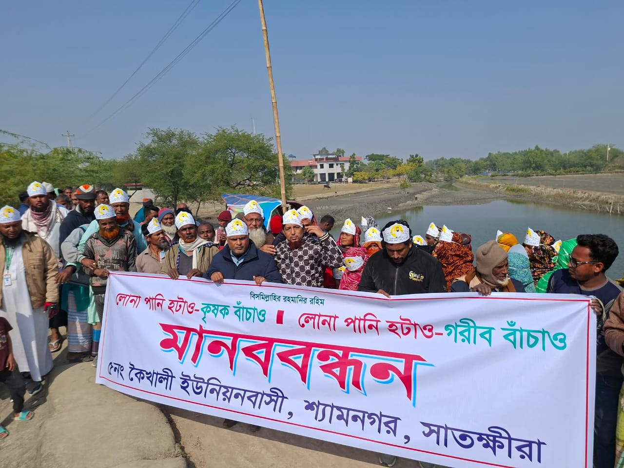 সাতক্ষীরা'র শ্যামনগর উপজেলার কৈখালী ইউনিয়নের কাঠামারী-পরানপুর এলাকার সর্বসাধারণ মানুষ লবন পানি উত্তোলন বন্ধে এক মানববন্ধন অনুষ্ঠিত হয়েছে। বৃহস্পতিবার বিকাল ৪ টায় ৫ নং কৈখালী ইউনিয়নবাসীর আয়োজনে