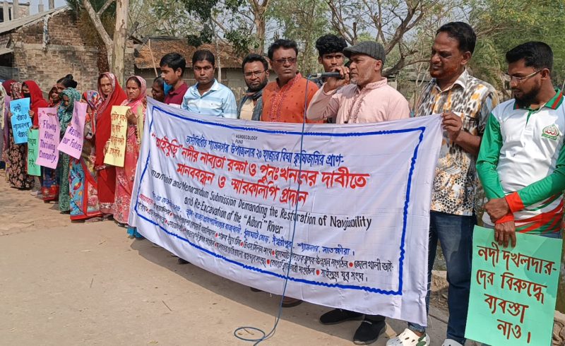 শ্যামনগরে নদীর চরে গাছ হত্যার প্রতিবাদে মানববন্ধন