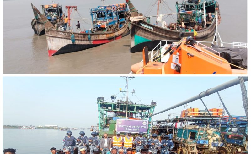 কোস্ট গার্ডের অভিযানে ৩ টি অবৈধ আর্টিসানাল ট্রলিং বোট, ট্রলিং জাল ও বিপুল পরিমাণ সামুদ্রিক মাছসহ ৩৭ জেলে আটক