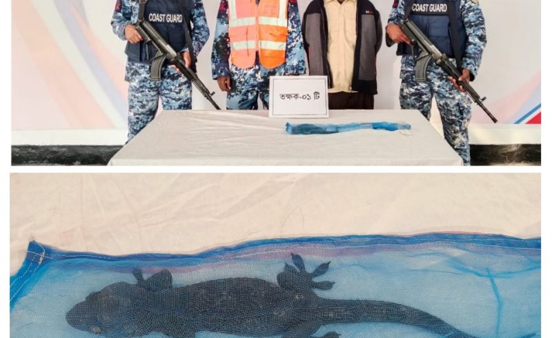 বিরল প্রজাতির তক্ষক সহ ১ পাচারকারীকে আটক করেছ কোস্ট গার্ড